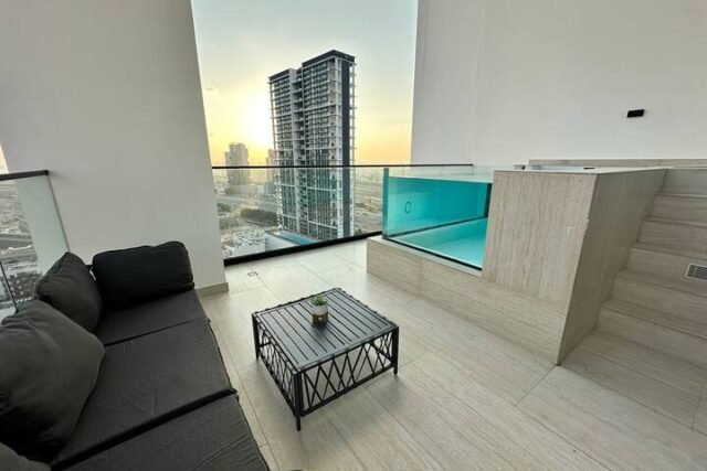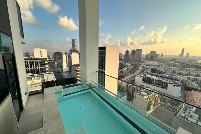 Welcome to your chic urban retreat in Jumeirah Village Circle! Located on the 21st floor of Binghatti Onyx, this stylish 2-bedroom apartment offers city views, modern comfort, and cozy charm. Enjoy a bright, minimalist space with soft tones and bold accents, a fully equipped kitchen, and a serene balcony that comes with your own plunge pool. Ideal for couples, families, or business travelers seeking a peaceful yet connected Dubai stay.